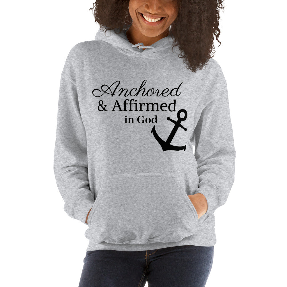 Everyone needs a go-to, cozy sweatshirt to curl up in, so curl up on this "Anchored and Affirmed in God" Hoodie.